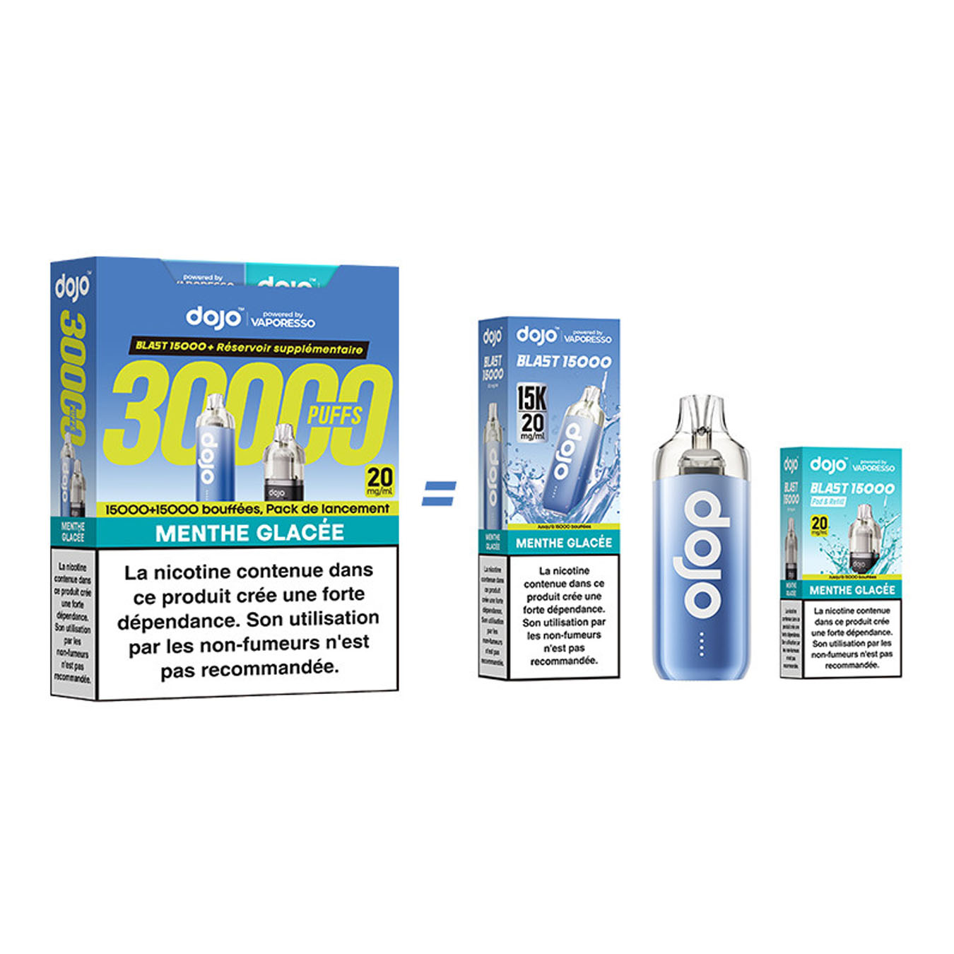 Avec ses 10 ml de e-liquide et son autonomie pouvant atteindre jusqu’à 15 000 bouffées*, la Puff Dojo Menthe Glacée offre une durée d’utilisation remarquable. Sa recharge USB-C la rend pratique et simple au quotidien. Elle convient autant aux vapoteurs débutants qu’aux confirmés à la recherche d’une puff fiable, durable et ultra rafraîchissante.