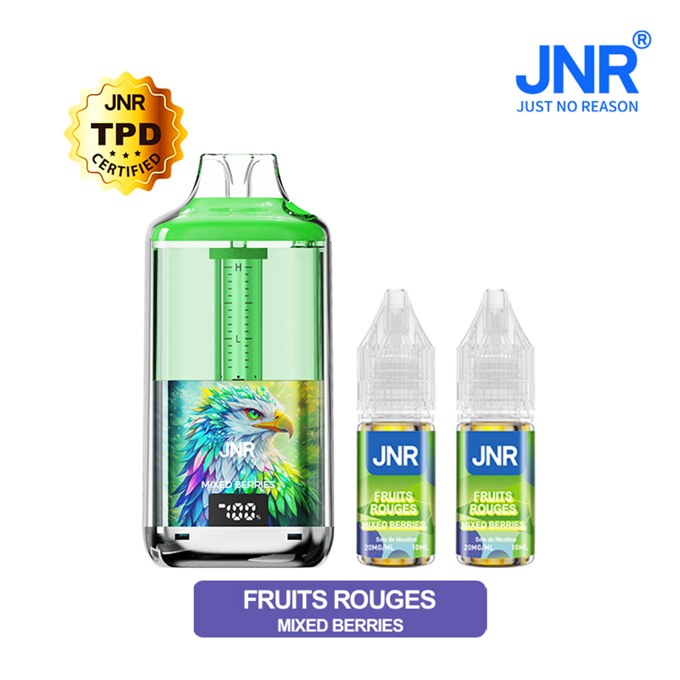 Découvrez la JNR 30K Falcon Gem+ Mixed Berries, une puff rechargeable nouvelle génération pensée pour offrir une expérience de vape fruitée, intense et équilibrée. Ce modèle est livré avec 2 flacons d’e-liquide premium de 10 ml en sels de nicotine, pour profiter pleinement d’un mélange gourmand de fruits rouges,